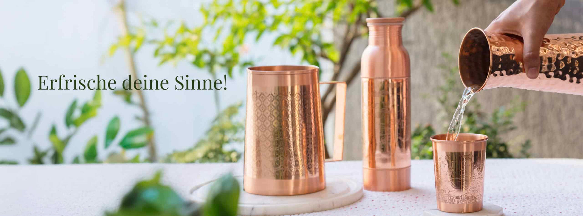 Kupferwasser, auch Tamra Jal genannt, ist ein uraltes ayurvedisches Hausmittel. Es entsteht, wenn frisches Trinkwasser für mehrere Stunden in einem Kupfergefäß aufbewahrt wird.